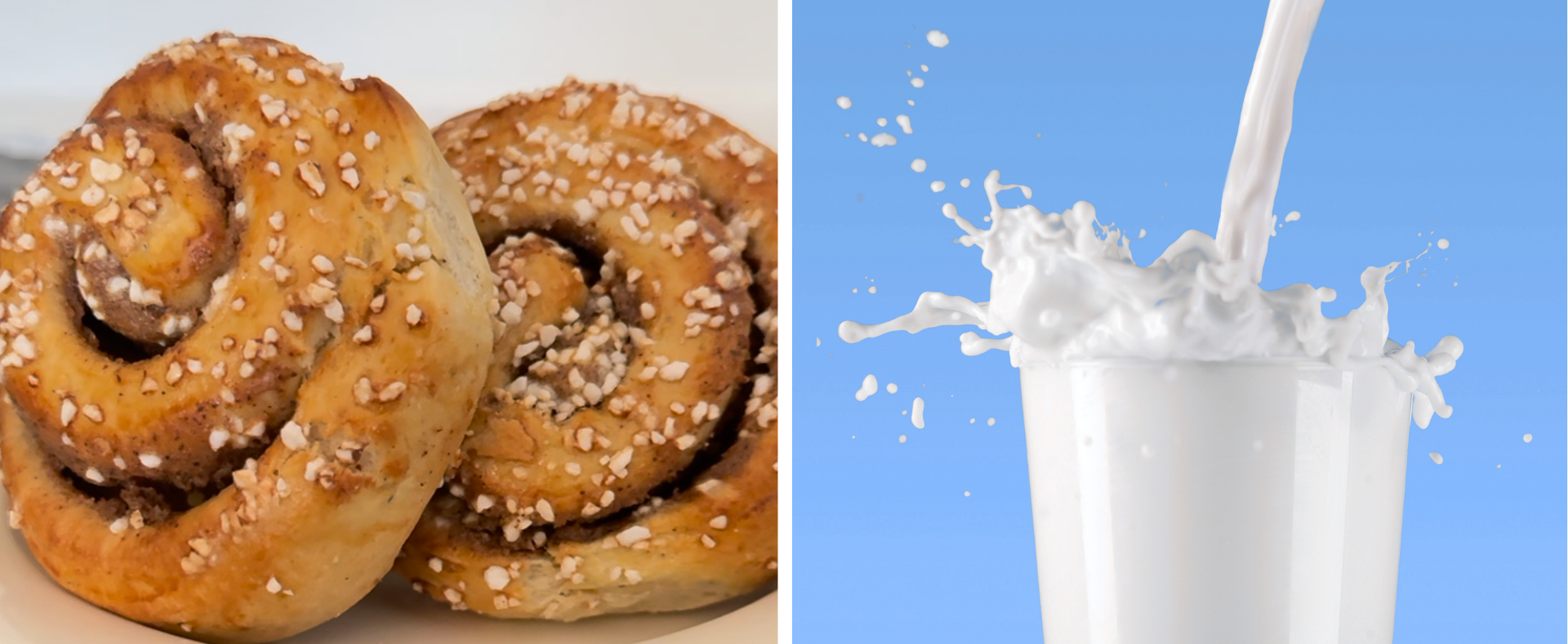 Vad vore väl en kanelbulle utan ett glas kall mjölk? Kombinationen är en klassiker av en anledning. Smaken av mjölk rundar av den söta och kryddiga bullen, och de milda tonerna gör att smaken av kanel och kardemumma verkligen får glänsa, säger smakexperterna. Vi håller med. Men mjölk är inte bara gott – det är också näringsrikt och hälsosamt!