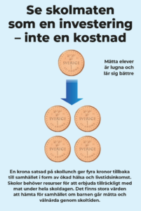 Forskning från Lunds och Stockholms universitet visar att den avgiftsfria skollunchen gett långsiktiga effekter på barns hälsa, utbildningsnivå och livsinkomst. Varje krona som satsas på skolmat har gett samhället omkring fyra kronor tillbaka. Skolmat är därmed en samhällsinvestering, inte en kostnad.