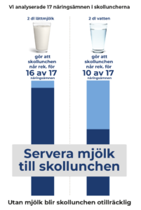 Mjölkens betydelse diskuterades ingående. Ett glas mjölk bidrar till att barn når 16 av 17 viktiga näringsämnen, jämfört med 10 av 17 med vatten. Samtidigt konstaterades att mjölkdrickandet minskar med åldern, trots dess betydelse, särskilt för barn som äter små portioner. Därför är det viktigt att Sverige fortsätter att delta i EU:s skolprogram för frukt och mjölk, eftersom det har stort betydelse för skolorna att servera dessa livsmedel.